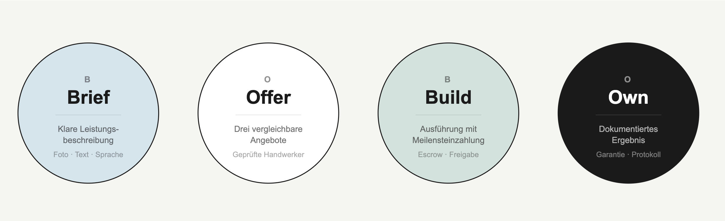 BOBO verbindet Eigentümer und Hausverwaltungen mit geprüften Handwerkern durch einen klaren Prozess: strukturierte Leistungsbeschreibung, vergleichbare Angebote, sichere Zahlung. Bei jedem Auftrag.